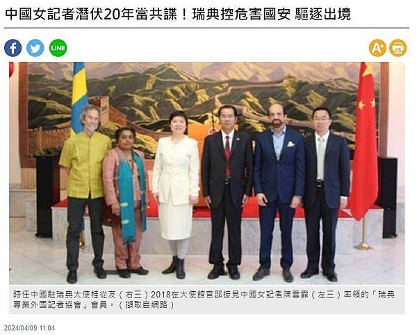 中國女記者潛伏20年當共諜!瑞典控危害國安 驅逐出境 - 國際 - 自由時報電子報
