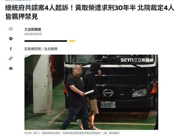 總統府共諜案4人起訴!黃取榮遭求刑30年半 北院裁定4人皆羈押禁見 https://bit.ly/4kdWjCO