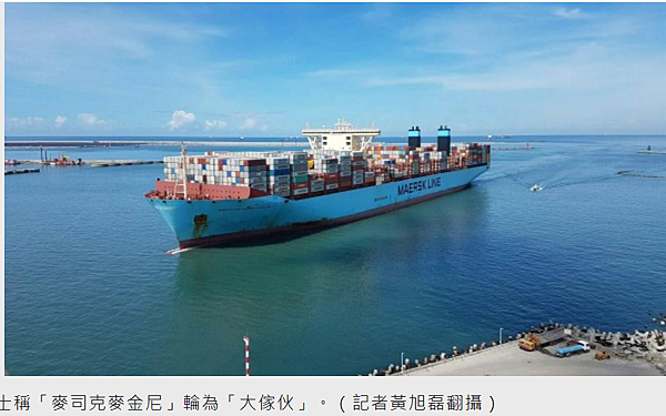馬士基集團(MAERSK LINE)旗下1.8萬TEU(20呎標準貨櫃單位)巨型貨櫃輪「麥司克麥金尼」(MAERSKMC-KINNEY MOLLER)上午首航高雄港,停靠第五貨櫃中心現代公司租用的77號貨櫃碼頭。