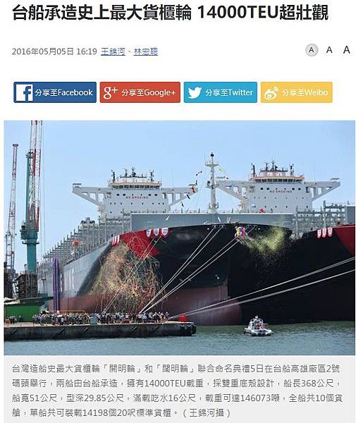 台船承造史上最大貨櫃輪 14000TEU超壯觀 - 中時電子報 - https://goo.gl/Qj3ajM
