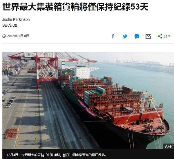 「有傳言說有公司已經在預訂能夠承載超過2萬個20英尺標凖貨櫃的貨船」,布萊特說,「但很多人認為,它們的承載量不會再上升很多了,因為停泊將成為問題。」