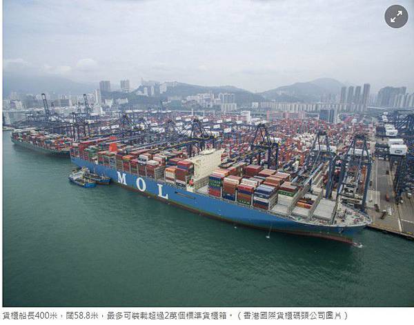 「承載量在1.8萬至2萬個貨櫃這個級別的貨輪,基本上只能在亞歐航線之間運行。其他航線上的海港,包括在美國的那些,處理不了這樣的船。人們相信,22500個貨櫃大概是極限。在這個級別以上,有沒有船港就成為問題了。」