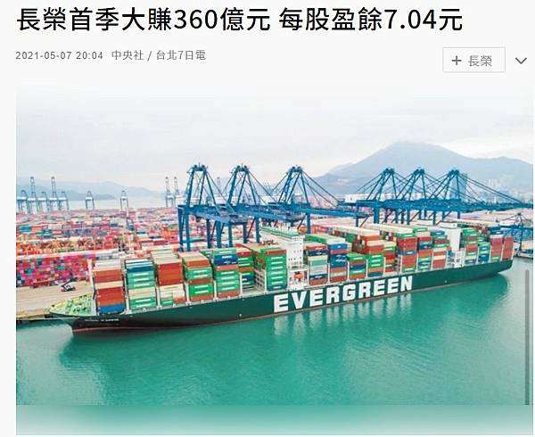長榮首季大賺360億 EPS衝破7元 - 總覽 - 新聞 - PChome 股市 https://bit.ly/3hcg40I