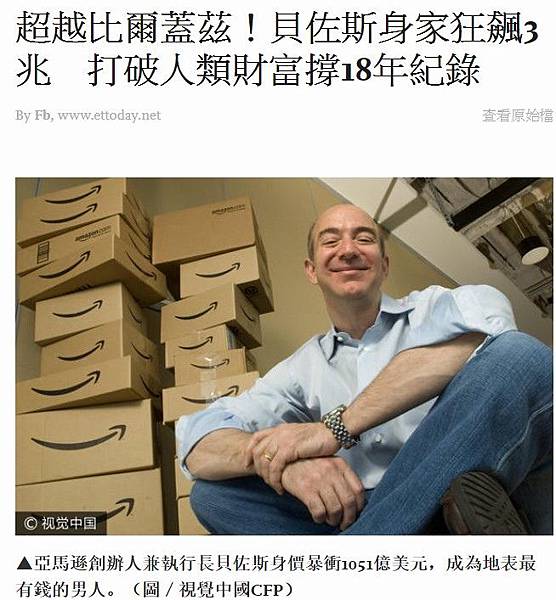超越比爾蓋茲!貝佐斯身家狂飆3兆 打破人類財富撐18年紀錄