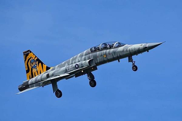 空軍司令部表示,彩繪F-5戰機共有3架,今天上午8時許,彩繪完成、編號5395的雙座戰機首度升空試飛,以虎斑為主軸,象徵志航,為孕育空軍小老虎的基地,堅守崗位,捍衛領空,並配合戰備需求,機身與機翼為低視度虎斑迷彩,直尾翅則為黃黑相間虎斑,凸顯老虎的勇猛頑強,又不失活潑的一面。