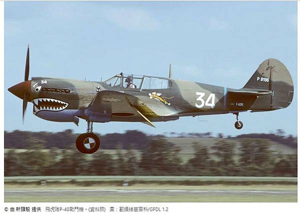 飛虎隊P-40戰鬥機。(資料照) 圖:翻攝維基百科/GFDL 1.2