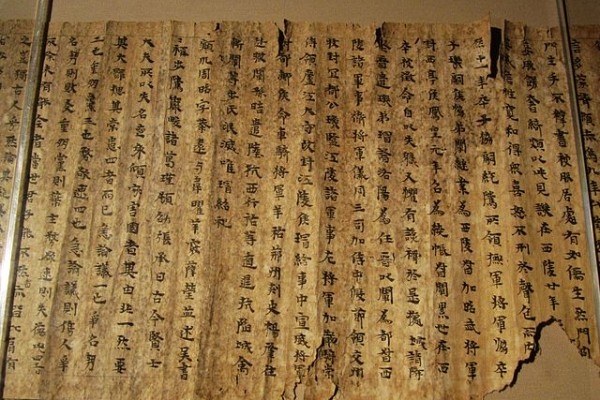 三國誌殘卷,東晉隸書抄本,保存了傳記的後半部和評語的前半部,藏經洞出土,敦煌研究院藏。(貓貓的日記本/維基百科)