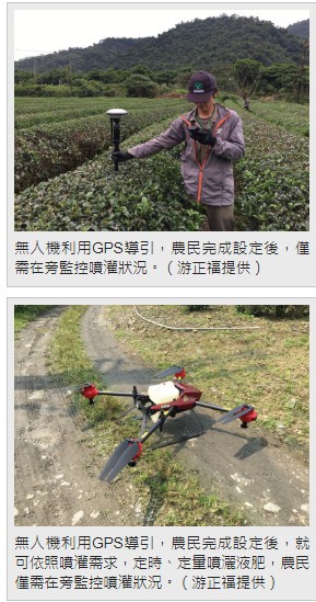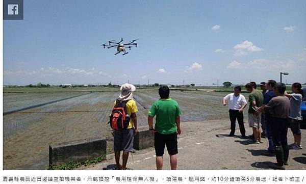 「將科技導入農業!」台灣許多農民大嘆人力不足,嘉義縣農民近日邀請空拍機業者,示範操控「農用植保無人機」,噴灑農、肥用藥,約10分鐘噴灑5分農地。太保市農會也舉辦「植保無人機」說明會,認為效率、價格都高,希望向中央爭取農用植保無人機納入農業機具補助項目。