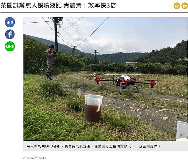 分享茶園試辦無人機噴液肥 青農驚:效率快3倍到Facebook 分享茶園試辦無人機噴液肥 青農驚:效率快3倍到Line