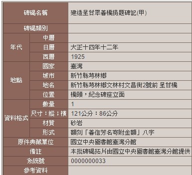 主旨 | 公告登錄「芎林呈甘橋及捐題碑」為歷史建築。 | ||||||||||||||||||
