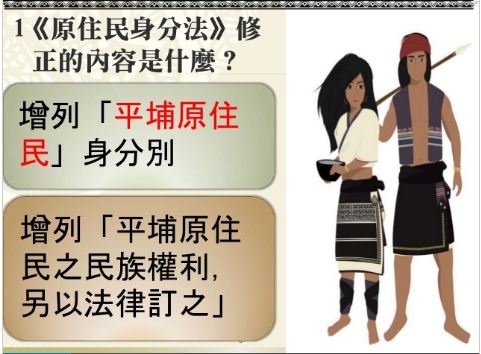 原民會說明,《原住民身分法》修正後,只要直系血親尊親屬在日治時期有「熟蕃」或「平埔」註記,無論相隔幾代,也不分父系還是母系,更無須改姓或傳統名字,就可以直接申請取得「平埔原住民」身分,「山地原住民」、「平地原住民」及「平埔原住民」均為憲法增修條文第10條規定所稱的「原住民族」。