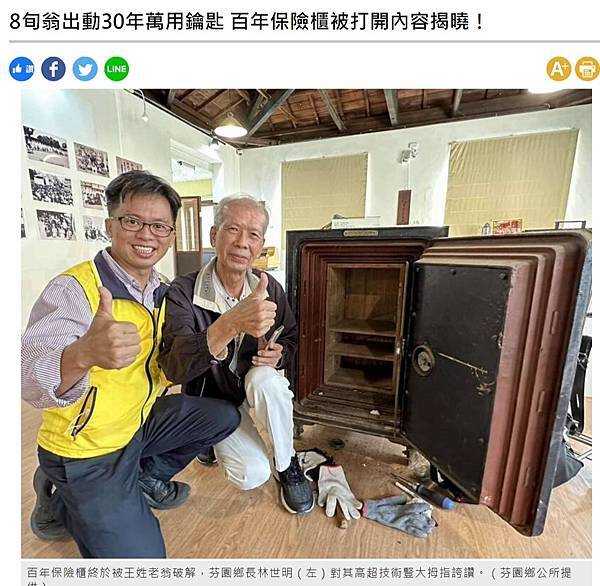 8旬翁出動30年萬用鑰匙 百年保險櫃被打開內容揭曉! - 生活 - 自由時報電子報 https://bit.ly/3yWITqk