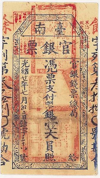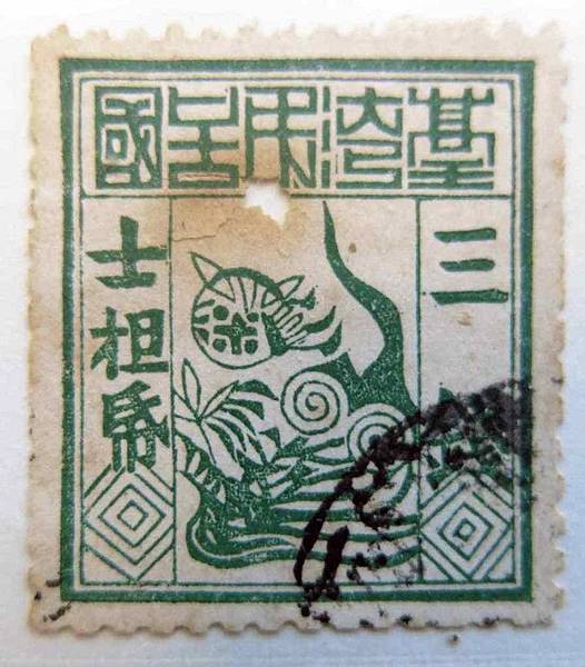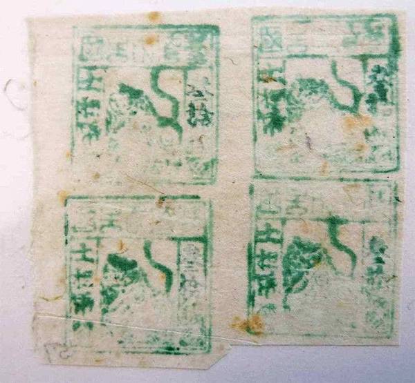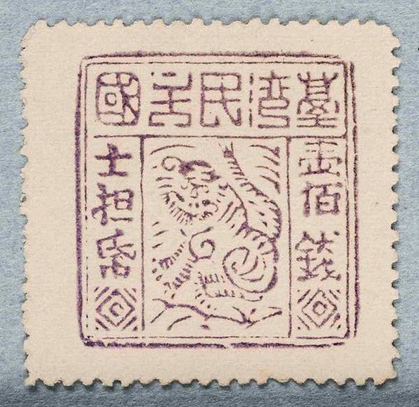 1895年臺灣民主國壹佰錢士擔紙(stamp)士擔紙即英文stamp之譯音
