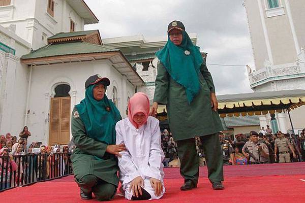 儘管受到國際譴責,在蘇門答臘島保守的亞齊省(Aceh),按照當地伊斯蘭律法(Sharia Law)規定,賭博、飲酒、同性或婚前性行為都被算做違法行徑,遭公開鞭刑的現象屢見不鮮。