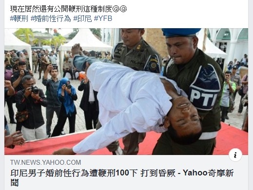 印尼男婚前性行為鞭刑100下 被打暈弄醒再打 - 國際 - 自由時報電子報 http://bit.ly/2OSrJU4