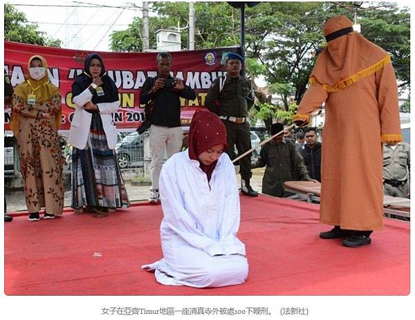 《法新社》報導,儘管受到國際譴責,在蘇門答臘島上的印尼亞齊特區,伊斯蘭教法禁止的一系列犯罪行為會面臨公開鞭刑,包括賭博、飲酒、同性戀和婚前性行為。