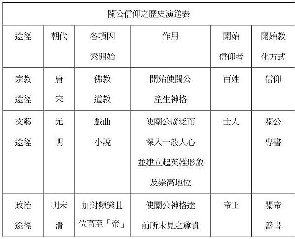 透過分析那些廟宇神壇最初興建和恢復的時間,我們可以從空間和時間兩個層面追溯關公崇拜的傳播情形。在一個特定的區域中,某座廟宇或神壇最早的修建時間可以表明當時該地區對關公崇拜的支持已經達到一定的程度,以至於可以動員信徒出鉅資修建一座廟宇。我們有一個關於廟宇修建和重建情況的小小資料庫,在此基礎之上統計出的大事年表,便是十一世紀以來這一崇拜日益受歡迎程度的指標。