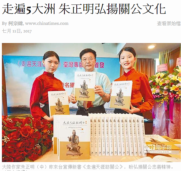 台灣專版《走遍天涯訪關公》7月問世,大陸作者朱正明11日來台宣傳新書,他自幼與關公結下不解之緣,深受關公忠義精神感動,發願弘揚關公文化,30幾載走訪五大洲,更參與修復全世界最高的西藏關公廟,明年7月將開光。