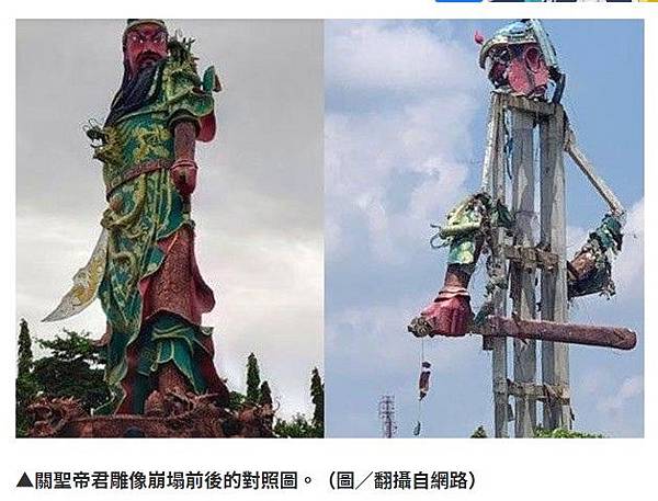 ▲關聖帝君雕像崩塌前的對照圖。(圖/翻攝自網路)