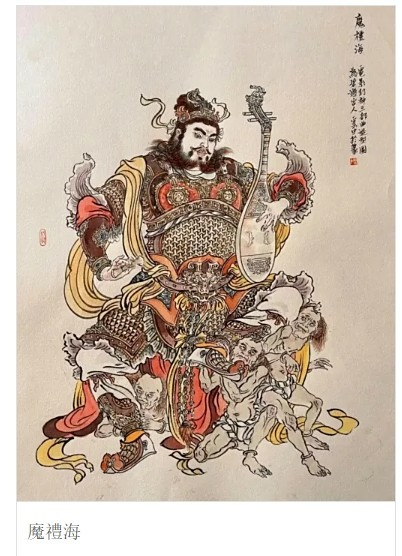 魔禮海,魔家四將之一,用一根長槍,背上一把碧玉琵琶,上有四條弦,按「地火水風」排布,撥動琴弦,風火齊至,與青雲劍有異曲同工之妙,後也被黃天化用攢心釘穿心而亡。[1-2 ] 死後被封為四大天王之北方多聞天王,掌混元傘一把,職雨 " 魔家四将(神魔小说《封神演义》中的人物)_百度百科