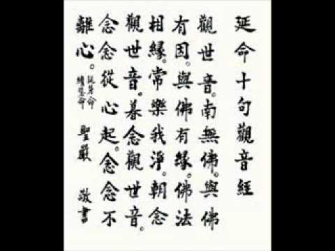 觀世音,南無佛,與佛有因,與佛有緣,佛法相緣,常樂我淨,朝念觀世音,暮念觀世音,念念從心起,念念不離心。