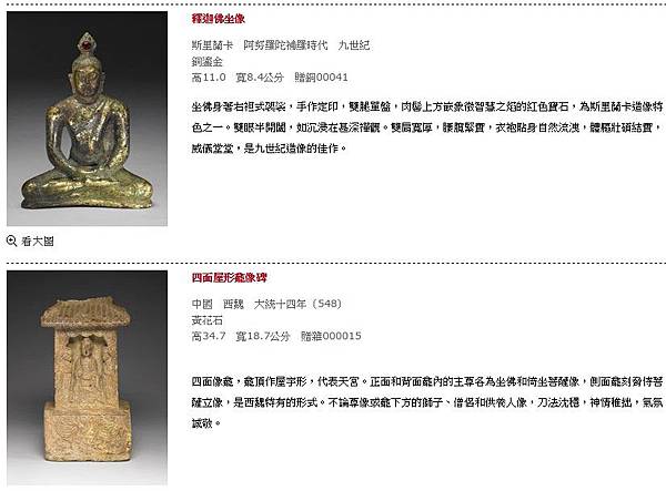 這批捐贈品以佛教造形藝術的金銅佛為主,且涵括部分的青銅禮樂器,文物時代更橫跨自西元前十一世紀至近代,文化地區遍布印度、東南亞、中國,綿延至韓國、日本。