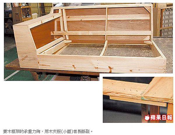 實木框架的承重力夠,用木夾板(小圖)者易斷裂。