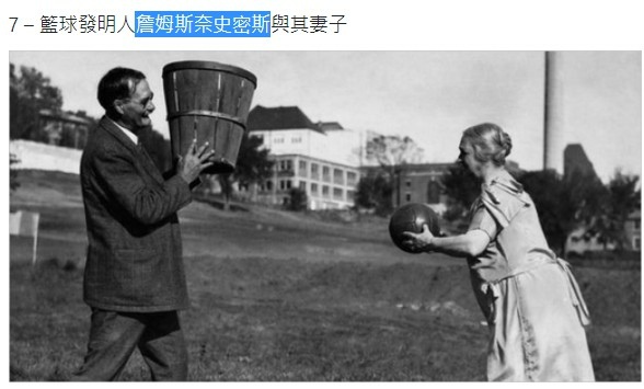 籃球運動起源於美國,始創者是加拿大人詹姆斯奈史密斯(Naismith)。