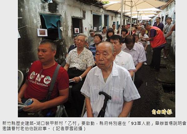 〔記者廖雪茹/新竹報導〕新竹縣歷史建築-湖口裝甲新村「乙村」再利用啟動,縣府文化局爭取文化部修復計畫補助,特別選在「93軍人節」舉辦首場說明會,邀請曾居住在乙村的老伯伯說故事,欣賞眷村紀錄片「牆裡牆外」和老照片,品嚐山東包子、湖南奶茶等眷村的好味道。