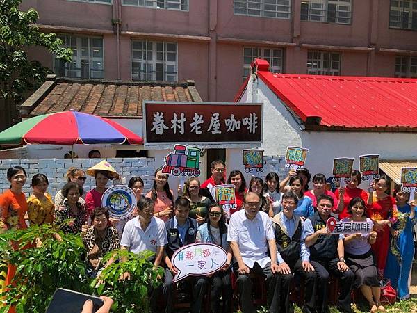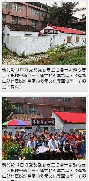 新竹縣湖口鄉愛勢愛心志工協會一群熱心志工,把裝甲新村甲村僅存的將軍老屋,改造為由新住民姊妹掌廚的多元文化異國食堂。(廖正仁提供)