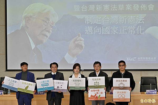 〔記者陳昀/台北報導〕台灣制憲基金會創辦人辜寬敏辭世週年,台灣制憲基金會今天(27日)發布「台灣新憲法草案」,闡明制憲基礎、歷史記憶、人權立國、民主防衛、主權獨立5大理念,確立民主、自由、人權、法治的立國精神,並再次宣示台灣國家主權獨立。基金會董事長王美琇說,持續推動台灣國家正常化,如同辜寬敏所說,很多事情做了不一定成功,但不做就是歸零,未來將持續與社會溝通、尋求社會更大共識。