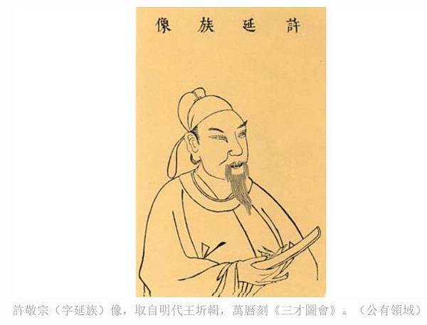 許敬宗(字延族)像,取自明代王圻輯,萬曆刻《三才圖會》。(公有領域)