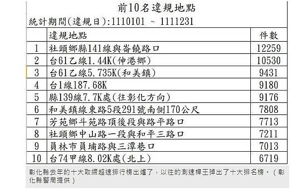彰化縣10大超速取締排行榜出爐 1年罰單吸金破億元 - 社會 - 自由時報電子報