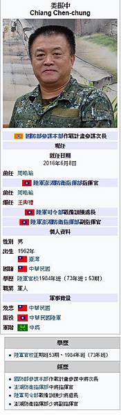 澎湖防衛部指揮官姜振中中將榮升參謀本部作戰與計畫次長一職,遺缺將由陸軍8軍團副指揮官王興禮將軍接任,並在7月升任中將。