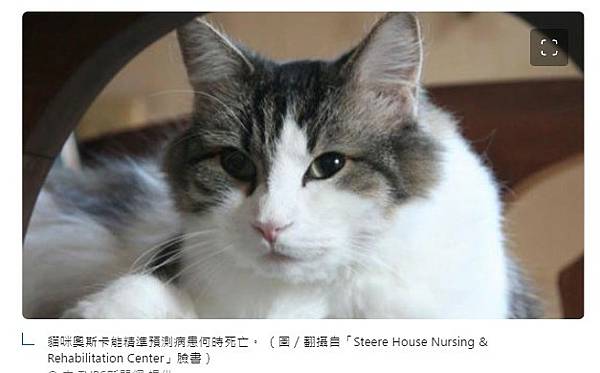 貓咪奧斯卡能精準預測病患何時死亡。 (圖/翻攝自「Steere House Nursing & Rehabilitation Center」臉書)