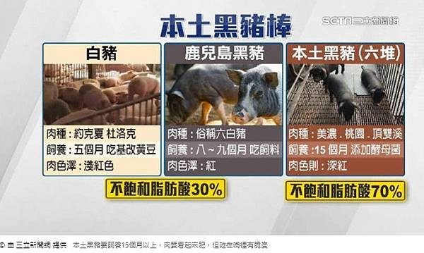 本土黑豬要飼養15個月以上,肉質看起來肥,但吃在嘴裡有脆度© 由 三立新聞網 提供 本土黑豬要飼養15個月以上,肉質看起來肥,但吃在嘴裡有脆度
