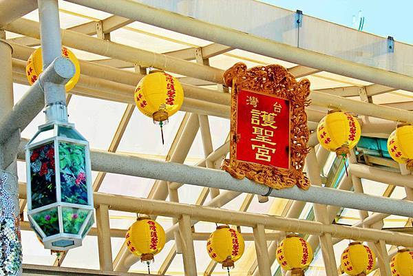 「護聖宮」位於鹿港彰濱工業區內,為了宣揚媽祖德澤,推動「鹿港古都.彰濱新城」同步發展而設立。玻璃廟以筏式水泥基座結合鋼骨作主結構,而後運用高科技隔熱安全玻璃作屋面及外牆,進而以木雕、石雕精品,融合彩繪窯燒、熱塑、堆疊玻璃等材料執行內裝修飾,展現台灣建築、工藝、科技和藝術的層次等級,歷經了6年打造,耗資了1.2億的新台幣,廟內供奉主神為琉璃媽祖,為全球第一座的玻璃媽祖廟。
