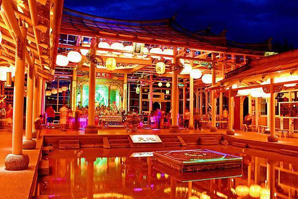 台灣玻璃廟外觀與內部陳設以全玻璃打造,白晝時就閃閃發亮,入夜後配上七色霓虹燈更是光彩奪目,是彰化最美的夜景之一,因此吸引不少民眾前來拍照留影,就有攝影團體為了拍出五光十色的倒影,在廣場前潑水拍攝,可是也造成遊客出入不便,甚至有浪費水源之虞。