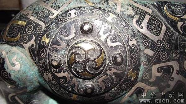 金銀錯銅器表面鑲嵌著金銀絲,構成瑰麗的圖案,叫做「金銀錯」。有的金銀絲細如毫發。是在春秋戰國時期出現的。