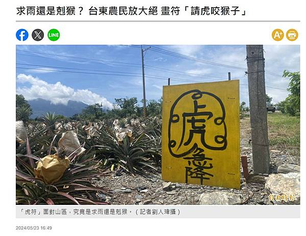 求雨還是剋猴? 台東農民放大絕 畫符「請虎咬猴子」 - 蒐奇 - 自由時報電子報 https://bit.ly/3UWjzuy