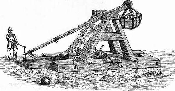 ▲16世紀中晚期的重型投石機,已經恢復使用混合投射
