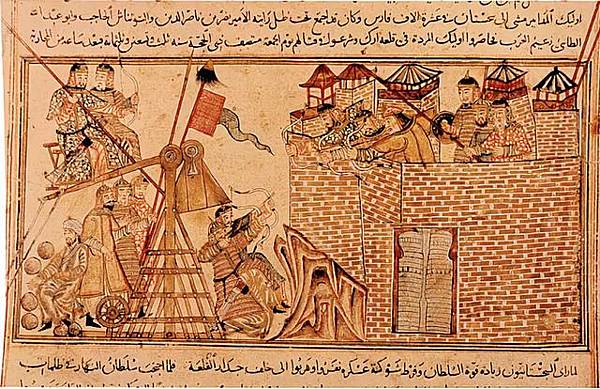 ▲13世紀細密畫中蒙古人所使用的配重投石機