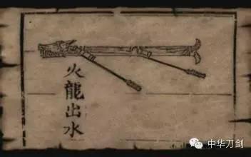 起,由龍頭下部一個孔中引出。又在龍身下而前後各傾斜裝著兩個大火箭筒,把它們的藥線也總連在一起,更把龍腹內裝神機火匍的總藥線連在前邊兩個火箭簡的底部,“水戰'可離水三四尺燃火,即飛水面二三里去遠,如火龍出於江面。筒藥將完,腹內火箭飛出,人船俱焚:這就說明:使用火龍出水時,先由“龍”下四個大火箭筒推送火龍前進;當筒藥將完之後,“龍”內若千神機火箭飛出,以射敵人。