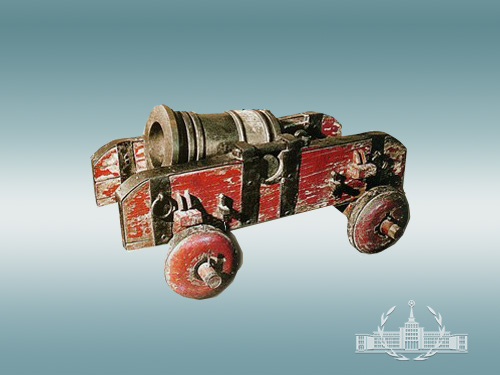 1690年制,銅質,火門鑄鐵,為一種大口徑短身管的前裝臼砲,砲身筒粗短,有六圈加強箍,前粗後斂,砲中部置耳,用以支撐、平衡砲體和調整射擊角度。以四輪木質砲車承載,發射鐵彈。砲身後部刻有滿、漢銘文:“大清康熙二十九年? 景山內御制威遠將軍? 總管監造御前一等侍衛海清? 監造官員外郎勒理? 筆怗式巴格? 匠役伊邦政? 李文德。”砲膛分為前膛和藥室兩部分,前膛深37.5厘米,藥室深16厘米,直徑10厘米。此砲殺傷面積大,在康熙平定中國西北部葛爾丹叛亂和清軍多次對敵作戰中發揮了很大的作用。其銘文對研究清代軍工製造業提供了重要的實物資料。康熙時,無論是火器的製造規模、品種數量,還是火器的性能、製造工藝等方面都達到了高峰。此砲具有特別重要的歷史、科學價值,定為國家館藏一級文物