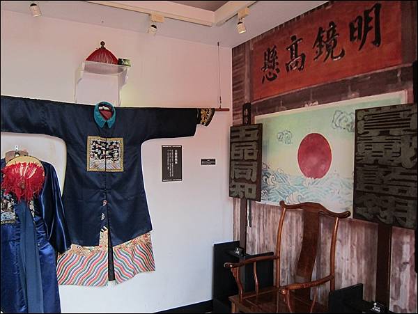 武舉人故居是單落雙護龍的三合院建築,新潮的白色拜亭是昭和年間改建的結果,亭內兩旁放有武舉人練功用的「大刀」和「石鎖」,中堂上方橫掛著清光緒皇帝御賜的「武魁」匾額,彰顯大官人家,故居旁另有2棟三合院建築,各有保留百年建築之物,精華之處不遑多讓。
