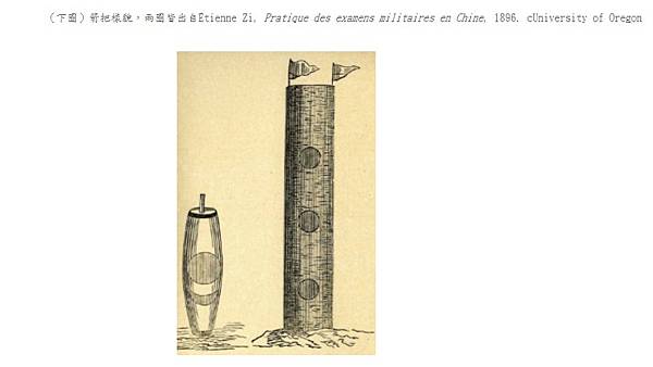 (下圖)箭把樣貌,兩圖皆出自Étienne Zi, Pratique des examens militaires en Chine, 1896. cUniversity of Oregon