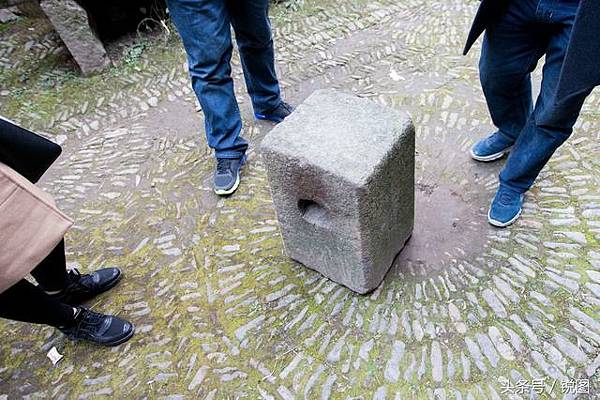 右圖就是現在我看到的這塊有棱有角的石礩,六個面都是平的,只有兩個側面中下部各鑿有一個凹孔,若把它提拿起來,只能用雙手的各四根手指曲彎的前兩節摳住的凹孔。當年那老人對我說得也許有些誇張,但這樣把360斤重的石頭提起來,若再能玩上幾下,那得有驚人的體力和真功夫的。