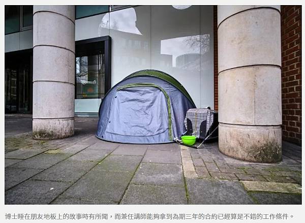 《衛報》報導引發熱議,倫敦大學的博士生艾咪黎(音譯,Aimée Lê),因為付不起租金,曾睡在帳篷裡兩年。她以為畢業後就能找到穩定的工作,然而卻事與願違……