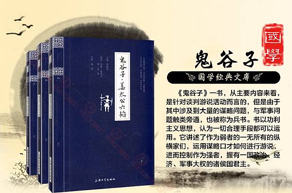 《鬼穀子》闡述了戰國縱橫家所崇尚的權謀策略和言談辯論技巧,指導思想與後世流傳的仁義道德大相徑庭,因而常受人詆毀。今天閱讀,仍要仔細辨析其中的陰謀詭道,不可太過。然而在戰國時期,這些縱橫遊說之術是很實用的。蘇秦憑其三寸不爛之舌,佩六國相印,以合縱之術統領六國共同抗秦,顯赫一時。張儀能將六國合縱一一瓦解,為秦統一六國立下不朽功勞。或許他們正受益於鬼穀子的教誨,悟到了遊說之術的精髓。