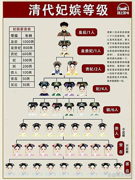 結果發現皇太后年薪約681萬元,皇后約309萬元,皇貴妃約247萬元,貴妃約185萬元,妃約92萬元,嬪約62萬元,貴人約31萬元,常在約15萬元,答應約9萬元。
